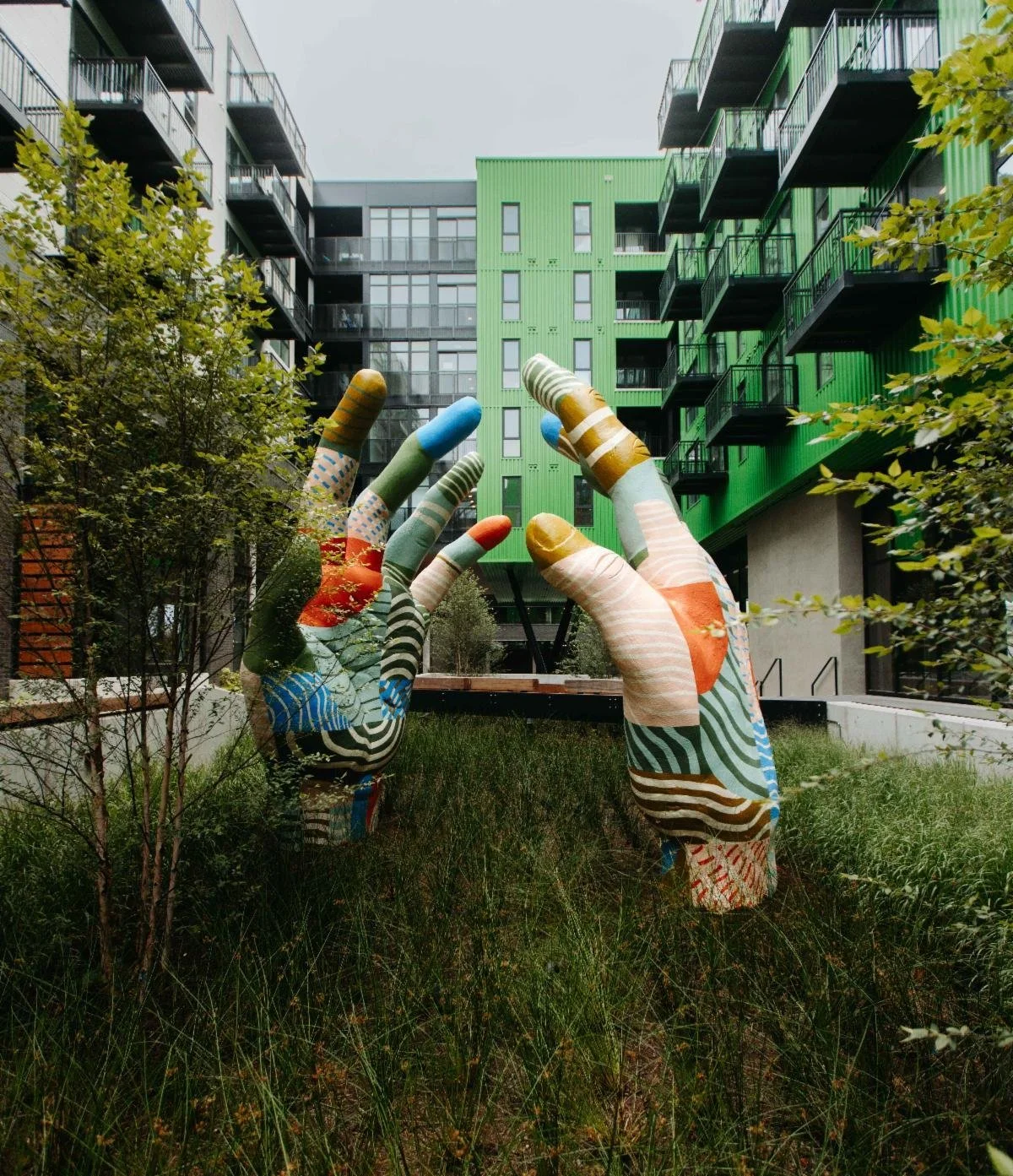 Fort Houston began fabricating these 17' tall hands in 2018 using a metal interior frame for the bones and sculpted spray foam for form. Betsy Littrell and Hines Development were central to the hand's conceptualization, production, and overall logistical oversight. I worked with Hastings Architecture and The Finery to create a graphic, quilt-like composition that reflects the creative spirit and history of the neighborhood, and Art Up Nashville brought it home, transporting and installing these in early 2024.