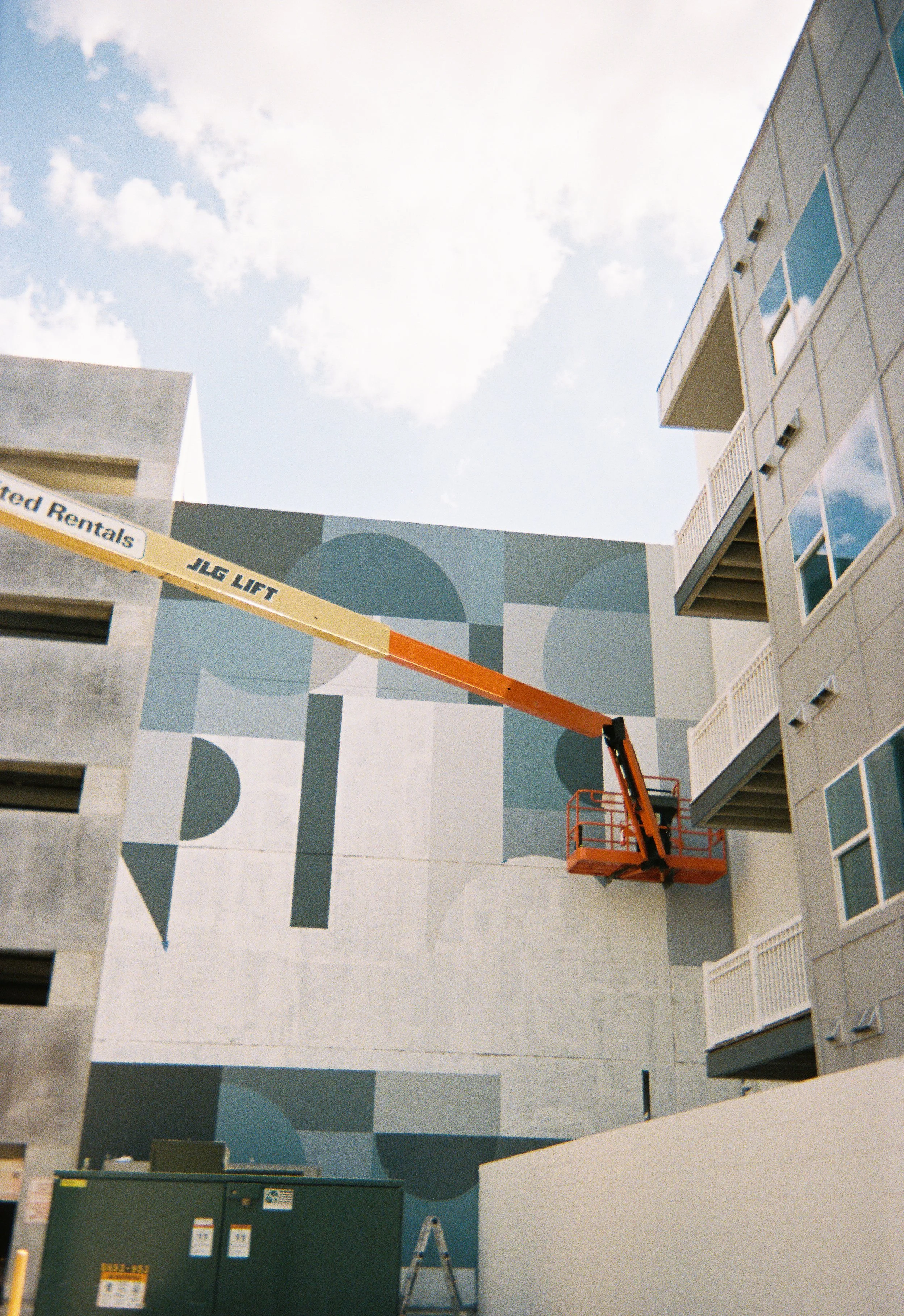 This mural was created for Shelby House, a national award-winning, affordable housing community in the heart of East Nashville. Designed by Holladay Ventures, this project reflects the development’s commitment to accessibility, quality, and thoughtful design. Soft gradients, overlapping shapes, and a calm, contemporary palette complement the building’s façade and helps establish a sense of place — reinforcing the idea that affordability and high-quality design can, and should, coexist.